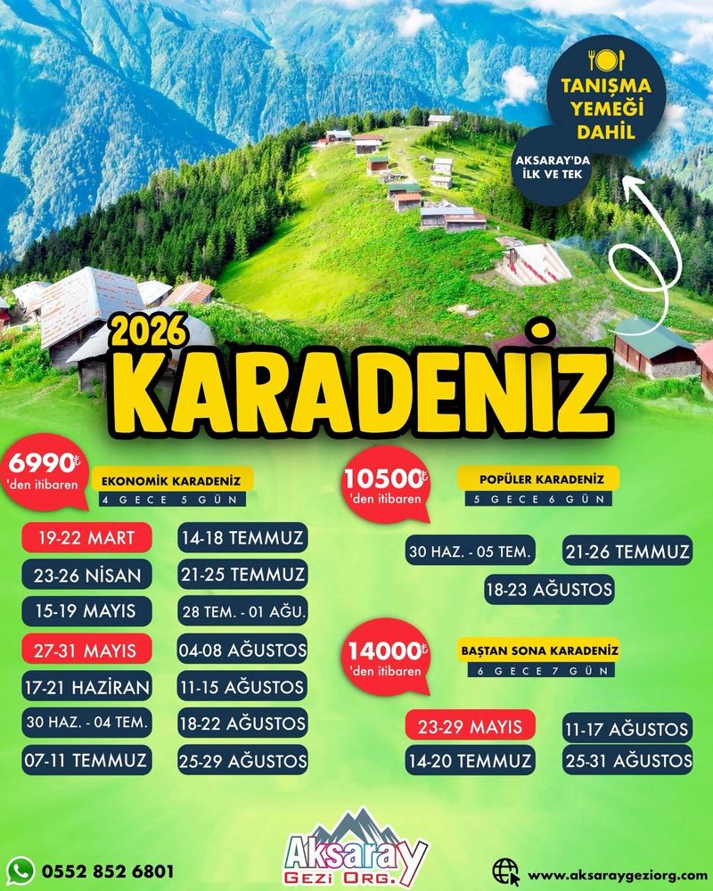Size özel programlar: Ekonomik, Popüler veya Baştan Sona Karadeniz seçenekleriyle