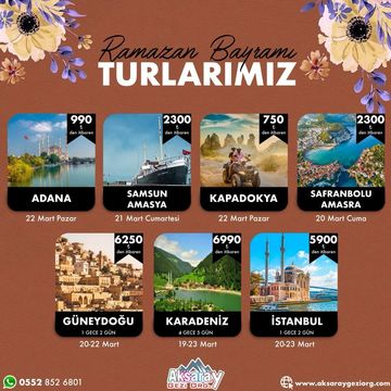 Bayram Özel Günübirlik ve Konaklamalı turlarımız için bizimle iletişime geçebilirsiniz